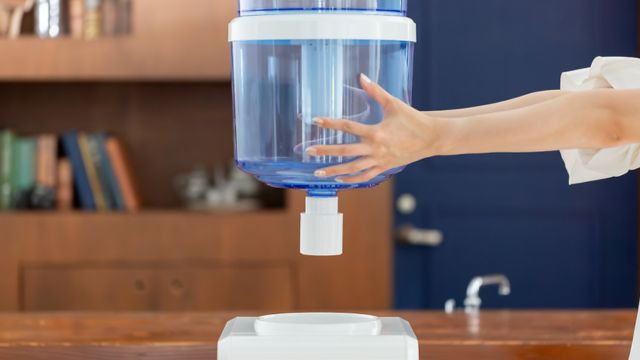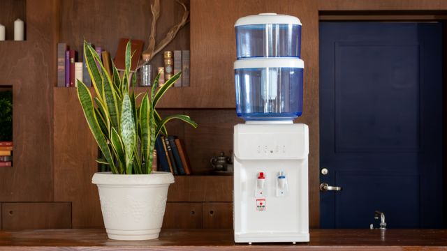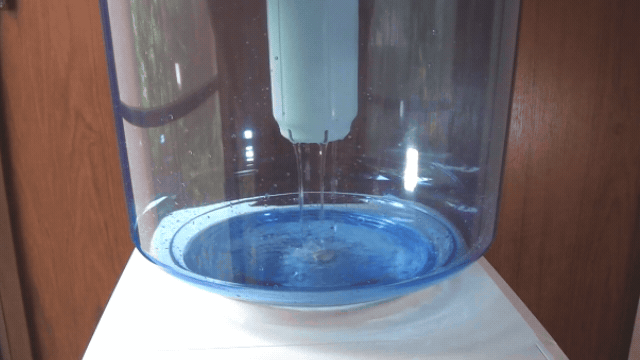 水道水がカートリッジに流れ冷水と温水がおいしい水に変わります。 浄水タンクの上部にポットで水を入れますのでもう重いボトルは持たないで済みます。 大容量の8リットルタンク(容量は下部タンクのみ)